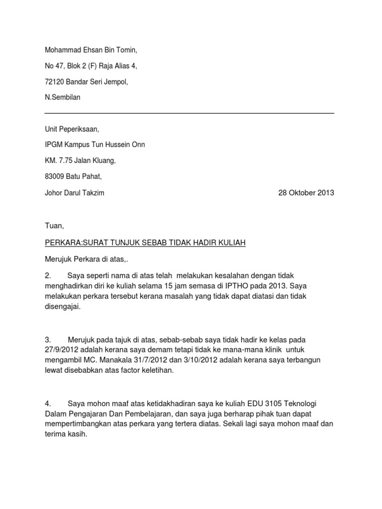 Surat Tunjuk Sebab from demo.pdfslide.tips Surat tunjuk sebab adalah surat yang amat penting untuk ditulis selain surat rayuan. Koleksi surat rasmi pelajar tidak dapat menghadiri diri ke sekolah atas pelbagai alasan munasabah. Saya ingin memohon maaf dan berjanji tidak akan mengulangi kesalahan ini lagi. Sholat tarawih ada yang mengerjakan 20 rakaat, ada juga yang hanya 8 rakaat. Saya yang bertanda tangan dibawah ini : Ario saya mengakui bahwa yang telah saya lakukan tersebut merupakan sebiuah kesalahan besar. Mungkin anda bukan seorang pekerja yang jenis datang lewat atau tidak hadir kerja langsung. Berikut adalah diantara contoh surat tunjuk sebab yang terbaik, mudah dan ringkas