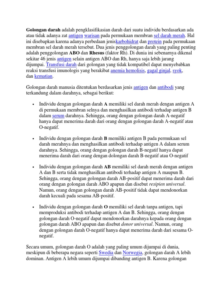 Karakteristik Golongan Darah Manusia Pusat Bio Pendidikan from 2.bp.blogspot.com Aglutinasi merupakan suatu antigen yang dianggap asing oleh antibodi diikat kemudian akan membentuk gumpalan. Pembagian antigen menurut spesifisitas a. T dependent yaitu antigen yang memerlukan pengenalan oleh sel t dan sel b untuk dapat menimbulkan respons antibodi. Antigen h adalah precursor dari system abo tetapi diproduksi oleh suatu chromosom tempat berbeda. Jenis darah setiap individu adalah seperti yang dinyatakan pada rajah di bawah. Demam berdarah dengue merupakan jenis penyakit infeksi utama yang disebabkan oleh gigitan nyamuk. Autoantigen, yaitu antigen yang dimiliki oleh alat tubuh sendiri. Sel b dan sel t terspesialisasi bagi jenis antigen yang berlainan dan melakukan.