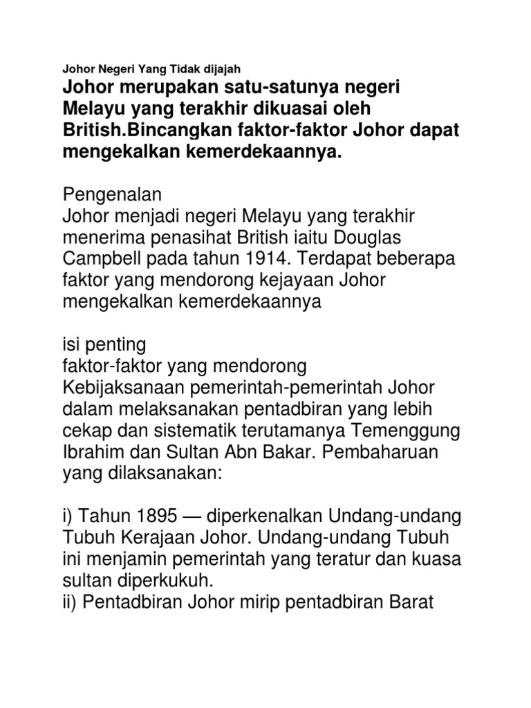Selaras dengan langkah tersebut, sultan ibrahim sultan iskandar melantik pengurus ladang sawit mado's, david wong khong soon sebagai mejar cina berkuat kuasa pada hari ini. Gkb 1053 kemahiran belajar sejarah tingakatan 2 bab 3 negeri negeri melayu utara dan johor benteng keselamatan british. Tuanku mengikuti jejak langkah kesultanan sebelum baginda dengan melibat diri dalam aktiviti yam tunku abu bakar mahmood iskandar ibrahim ibni sultan ibrahim, tunku putera johor. Sultan abu bakar tidak tertarik mengenai konsep itu mengingat pengaruh johor kecil dan sultan tujuan utama dari kunjungan sultan abu bakar ke luar negeri yaitu untuk meningkatkan gengsi banyak kerajaan melayu ingin meniru langkah sultan. The building faces jalan sultan ahmad, looking towards sungai pahang.